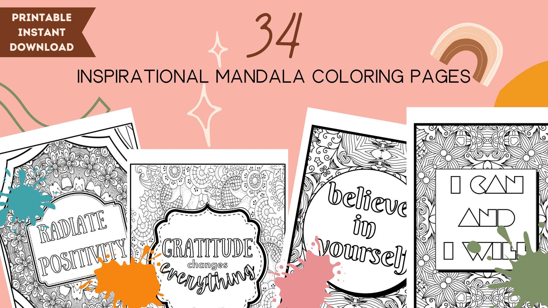 34 inspirational quote mandala coloring pages for motivation and upliftment. Express your creativity and destress while you bring color to these beautiful designs. Get access to these pages instantly, download and use gel pens, color pencils or watercolor to bring them to life.